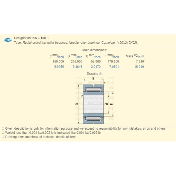 NA3150 Bearings Specification :